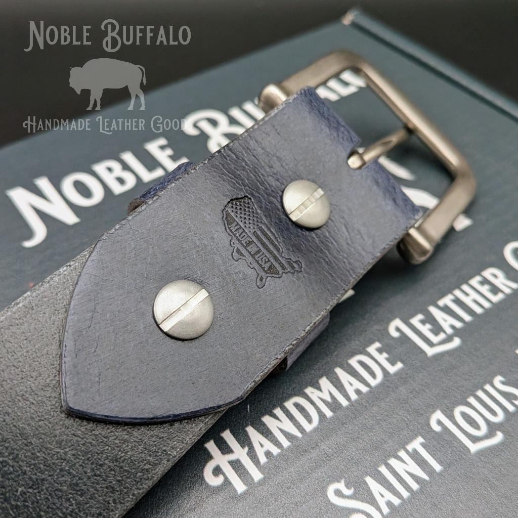 This belt leather is the bestselling strap in the shop. Buffalo is the softest of the leather straps I offer, which means it will be comfortable to wear, has no break-in period, and has a small amount of flex compared to some of the stiffer bridle leathers. The full grain hide has a beautiful pebbled natural grain. Some hides have more or less features, but all will have more character than a matte-finish belt. Rich color on these straps! Refresh the surface grain over the years with my shop-made leather balm.