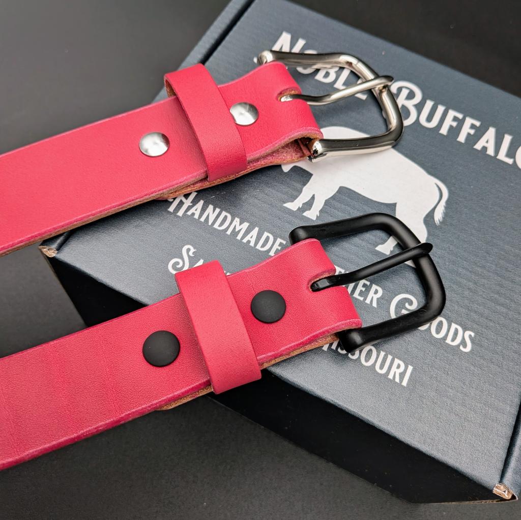New unique vibrant cactus flower pink leather belt! This color option is a limited time offering! Perfect for costumes, matching shoes, 1980s retro outfits, and excellent for making your outfit pop with a one-of-a-kind leather belt color.